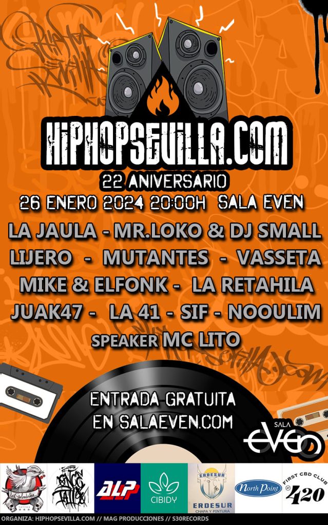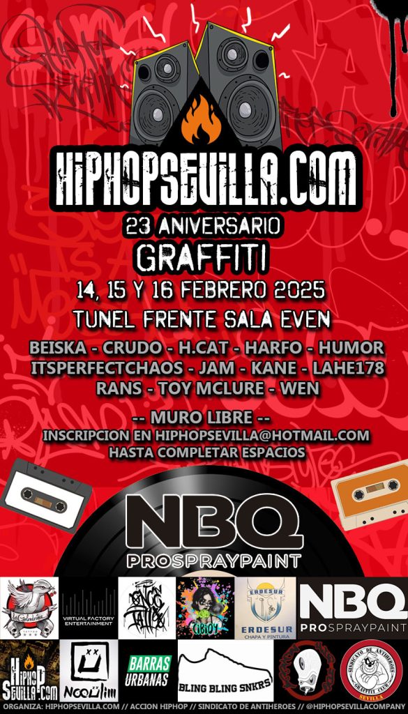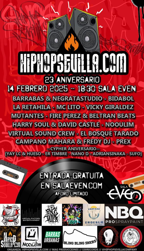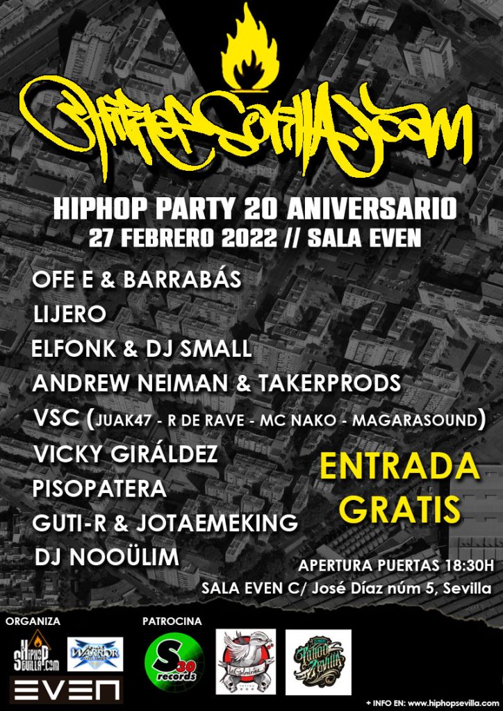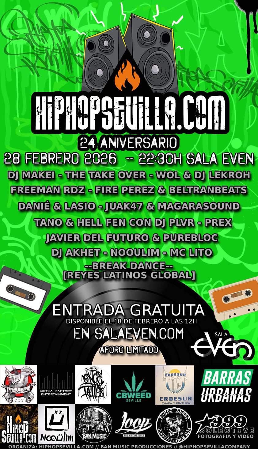 El proximo 28 de Febrero vuelve nuestro evento anual, cita indispensable en el calendario de eventos de HipHop de la ciudad, donde grupos de distintas epocas participan con conciertos en directo, break dance, graffiti….Entrada gratuita.